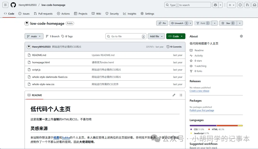 第一次写的网站代码还在HenryWHU0503/low-code-homepage放着